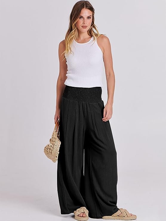 - Feature – Smocked high waist, wide leg, loose fit lounge pants with pockets, linen beach pants for women cover up, flowy dressy pants comfy and chic